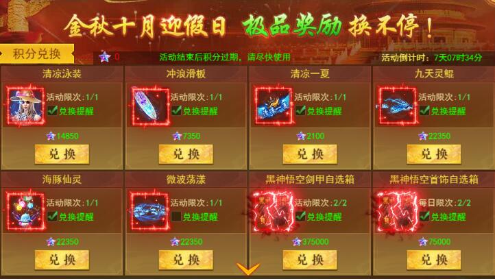 假日积分转盘超值回馈,每日升级转盘领海量积分,积分可兑夏日时装、超强神装等海量大奖!