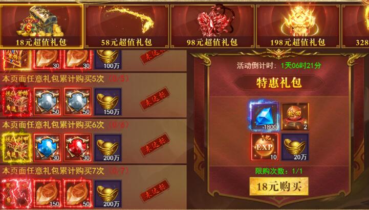 特惠礼包限量购买,累计达标购买次数更有超值福利领取!