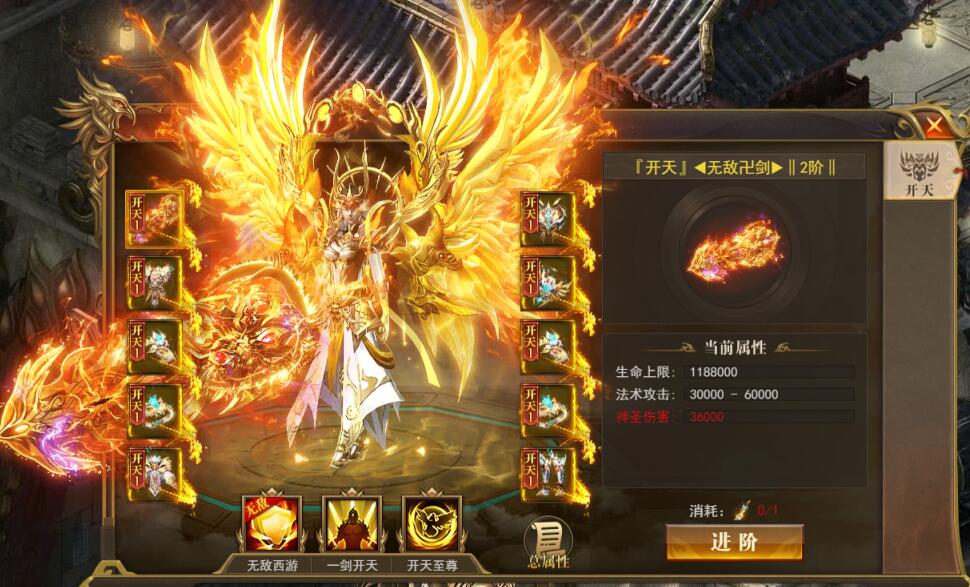 7、新增开天无敌神装,开服30天开启,入口:仙装旁 至尊 图标;穿戴可获得超高战力,还可激活无敌西游、一剑开天、开天至尊特殊效果