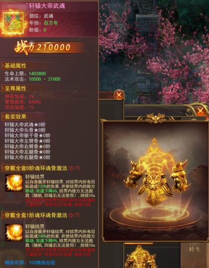 2、新增百万年魂环,穿戴一套十万年魂环魂骨可解锁。魂环分为:轩辕大帝武魂、盘古大帝武魂,佩戴全套可激活超强结界效果