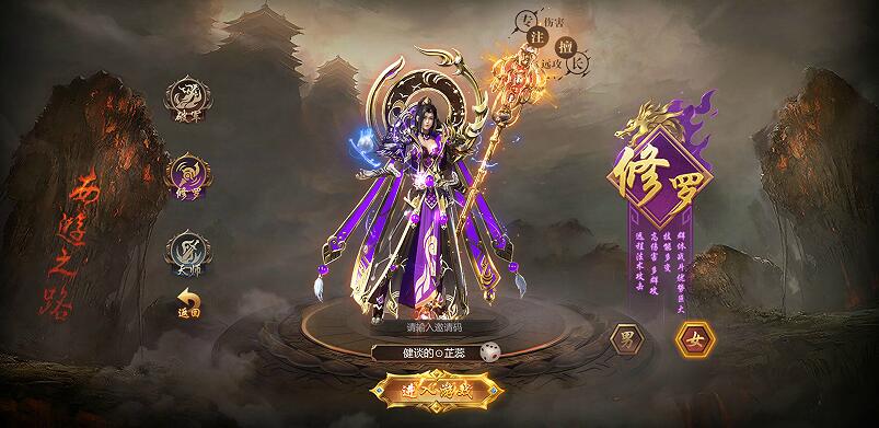 1.2修罗:远程法术攻击职业。高伤低血,暴力远程输出,弱水术,九幽黄泉,潜龙在渊,冰封天地,依靠高超的技巧与风骚的走位对敌人进行各种远程轰炸,无论单体PK还是群体作战,都能有着不俗的表现。