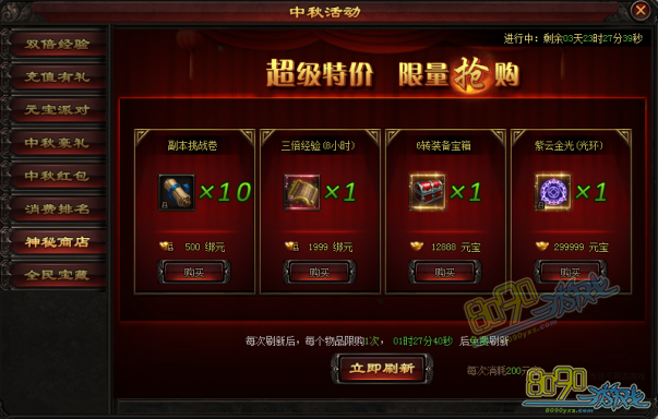 活动内容:活动期间,神秘商店限时开启,各种给力道具低价出售,先到先得哦!