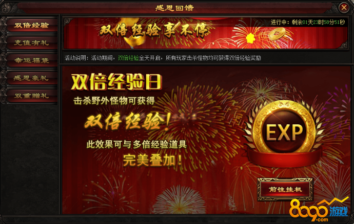 活动期间,双倍经验全天开启,所有玩家击杀怪物均可获得双倍经验奖励,还能与多倍经验道具完美叠加哦!