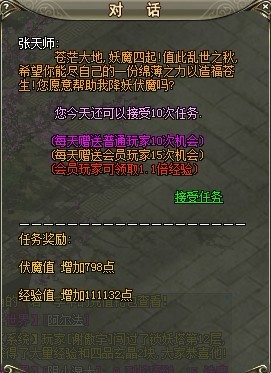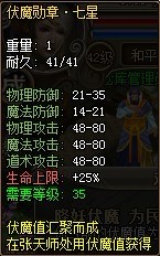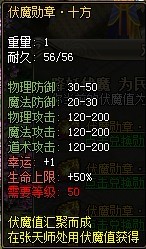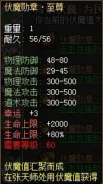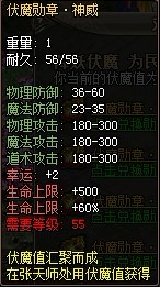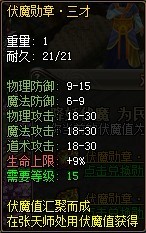 全身11件装备我们不要小看勋章只有1/11的位子他的重要性不低于武器和衣服哦。线面给大家看下勋章的具体属性和获得方式,勋章是用伏魔值在张天师出兑换伏魔值可以在商城购买也可以在张天师处做任务获得。
