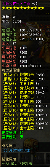 看到升级的图还是不够的把,我们来看看下面的装备信息。注意分男女衣服哦