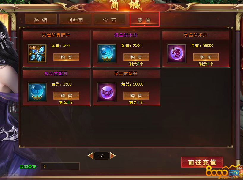 7、 参与对决可获得荣誉值,荣誉值可在荣誉商城购买道具