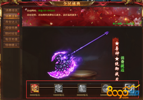 【说明】活动期间消费钻石越多,返利越丰厚!