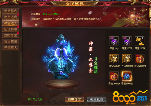 【说明】活动期间寻宝达到一定次数可领取相应大奖!次数越多奖励越贵重!