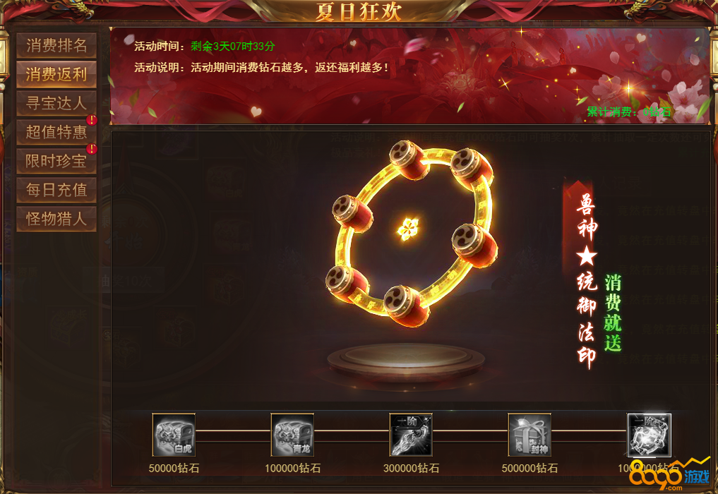 【说明】活动期间消费钻石越多,返利越丰厚!