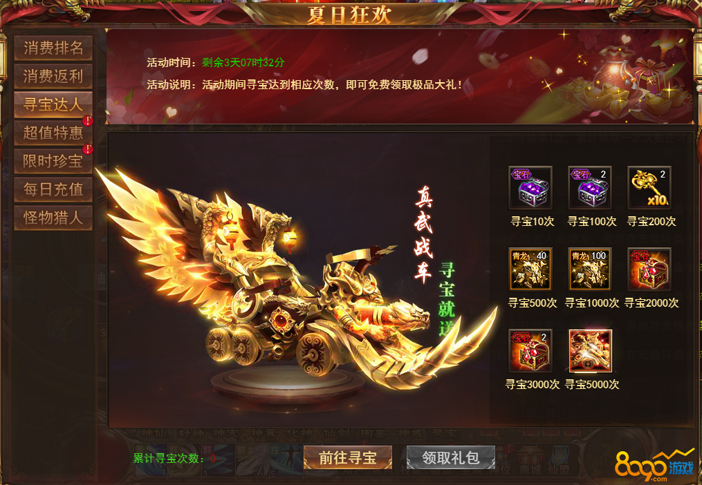 【说明】活动期间寻宝达到一定次数可领取相应大奖!次数越多奖励越贵重!