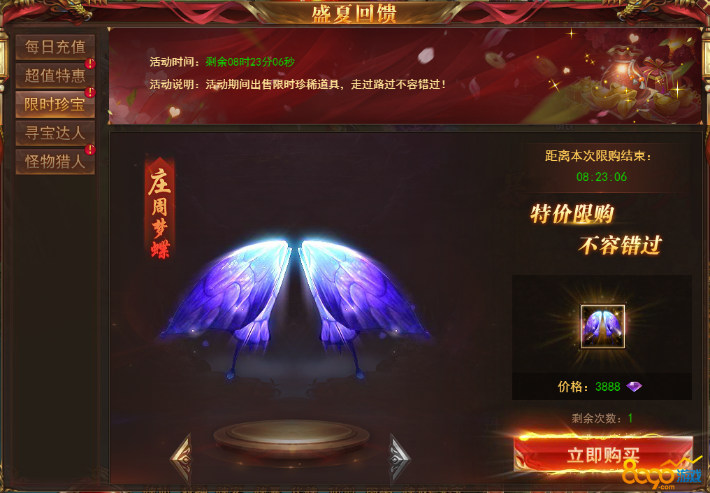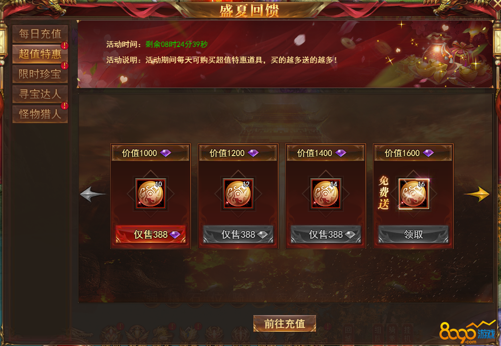 【说明】活动期间每天可购买超值特惠道具,买的越多送的越多!