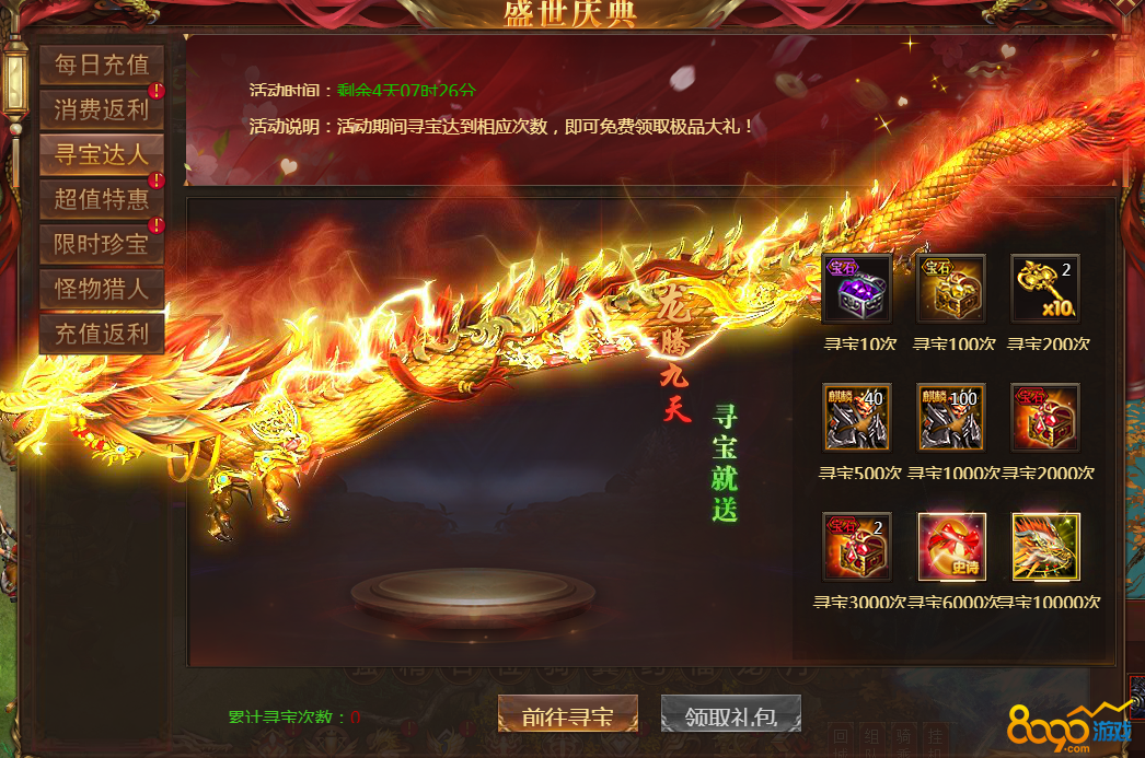 【说明】活动期间寻宝达到相应次数,即可免费领取极品大礼!