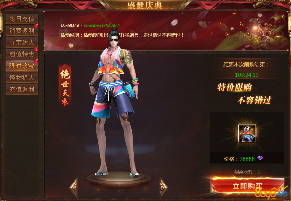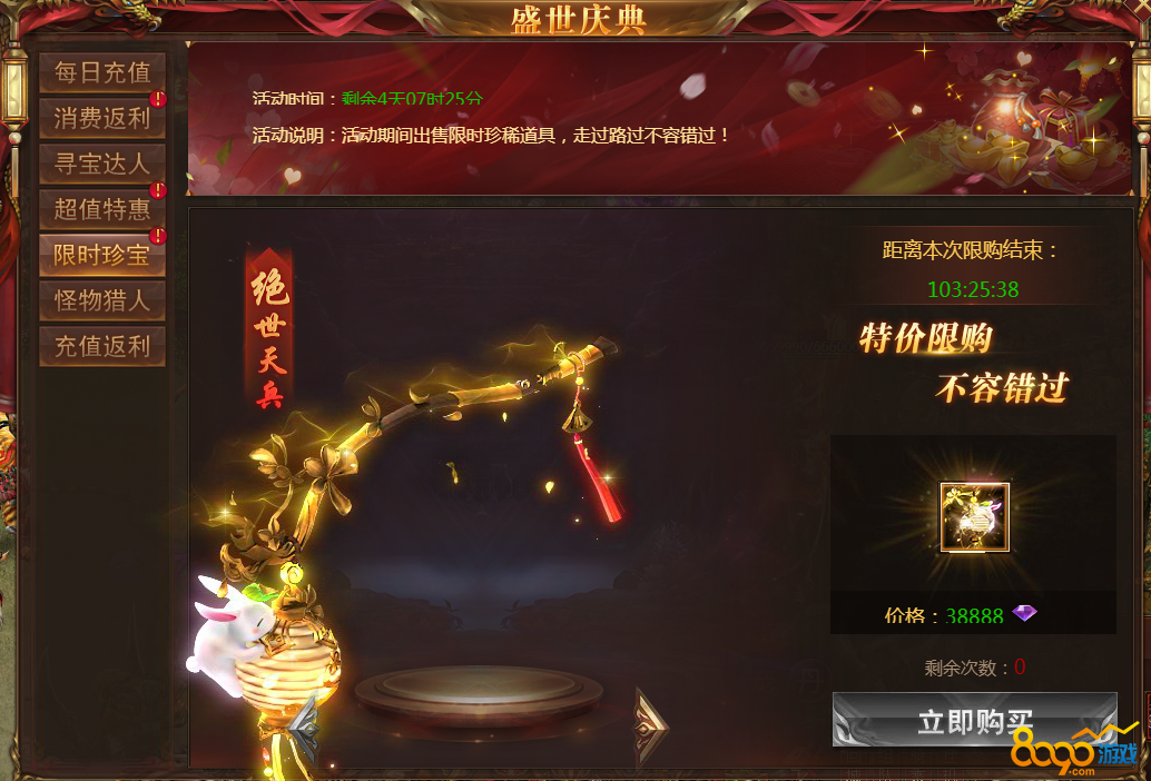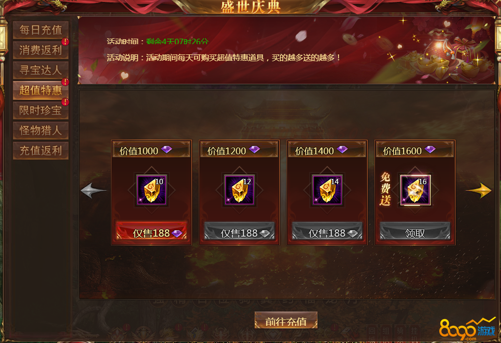 【说明】活动期间每天可购买超值特惠道具,买的越多送的越多!
