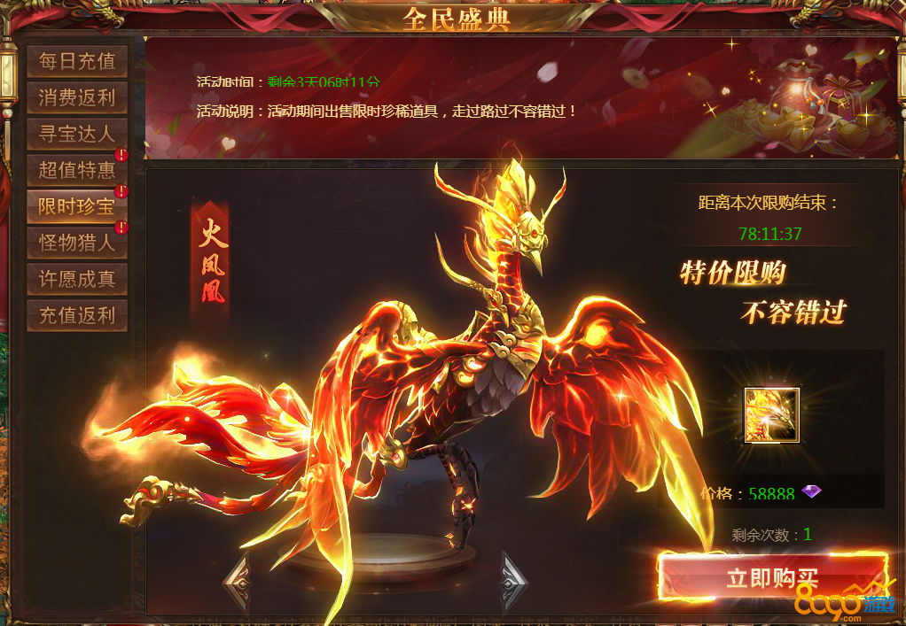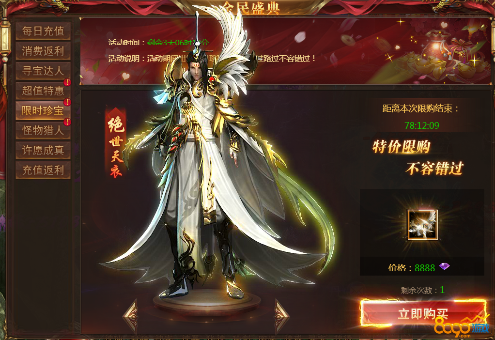 【说明】活动期间每天可购买超值特惠道具,买的越多送的越多!