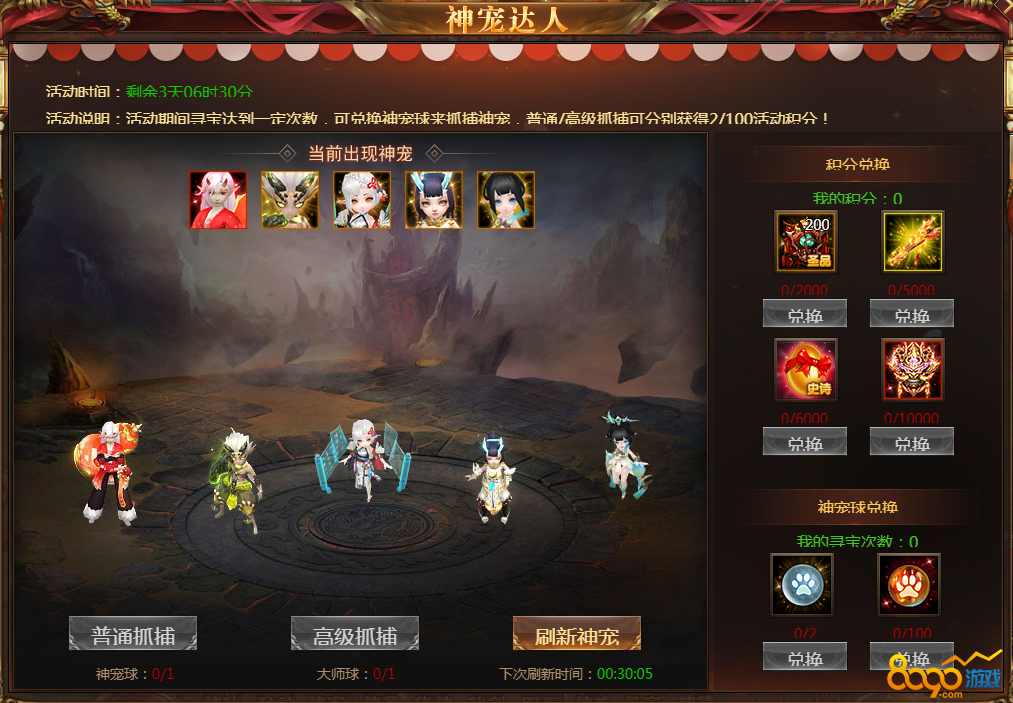 【说明】活动期间寻宝达到一定次数,可兑换神宠球来捉抓捕神宠,普通/高级抓捕可分别获得2/100活动积分!