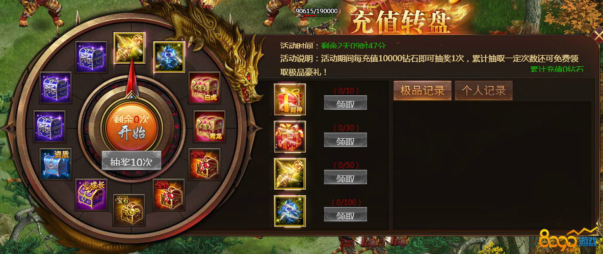 【说明】活动期间每充值10000钻石即可抽奖一次,累计抽取一定次数还可免费领取极品豪礼!