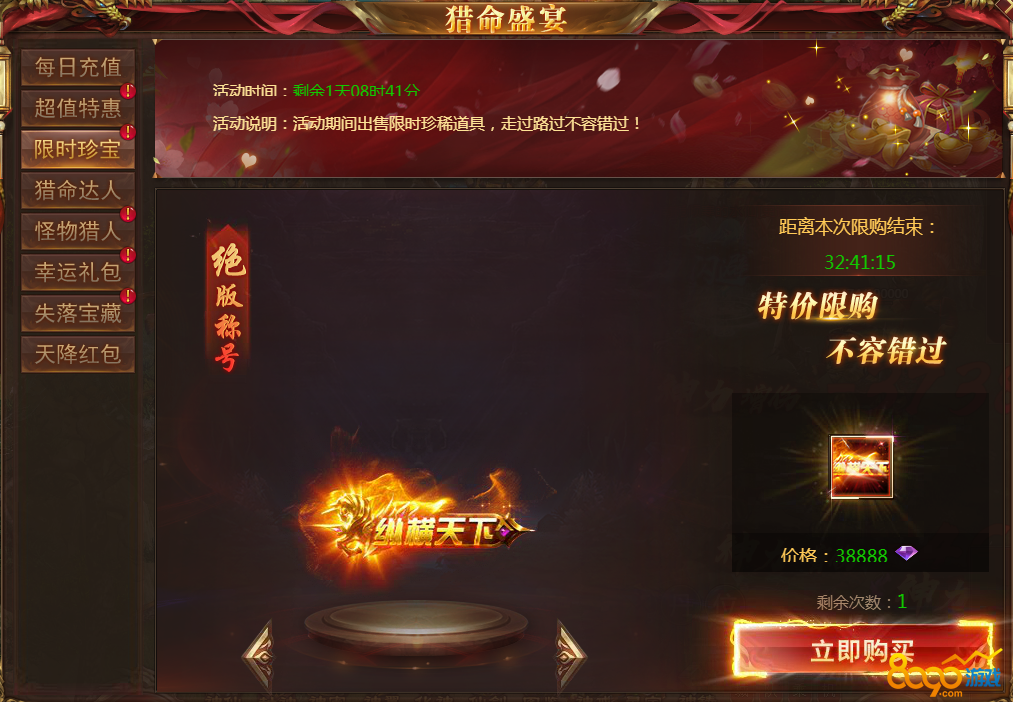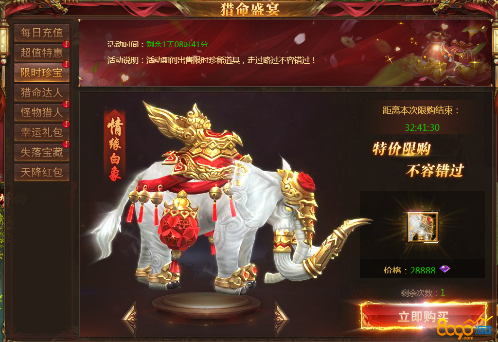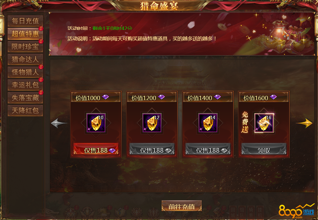 【说明】活动期间每天可购买超值特惠道具,买的越多送的越多!