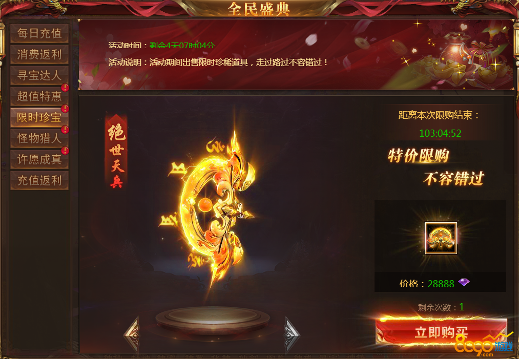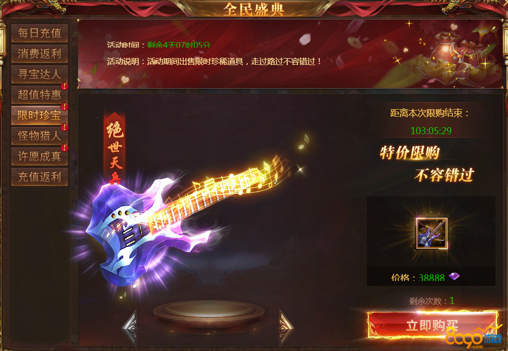 【说明】活动期间每天可购买超值特惠道具,买的越多送的越多!