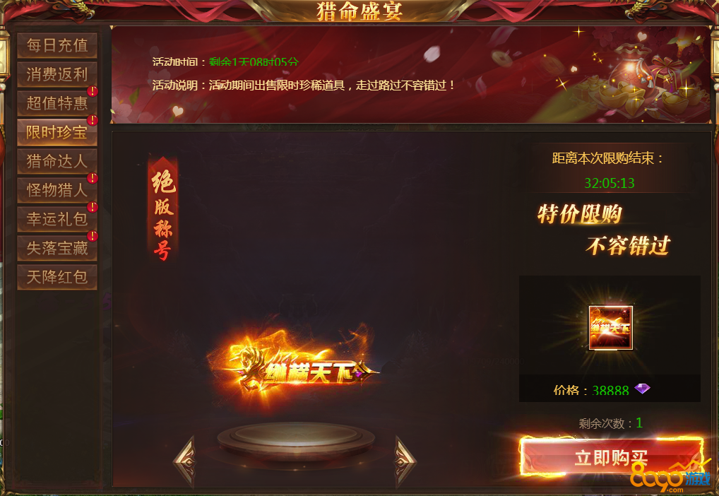 【说明】活动期间每天可购买超值特惠道具,买的越多送的越多!