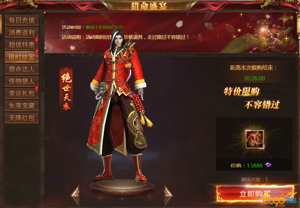 【说明】活动期间每天可购买超值特惠道具,买的越多送的越多!