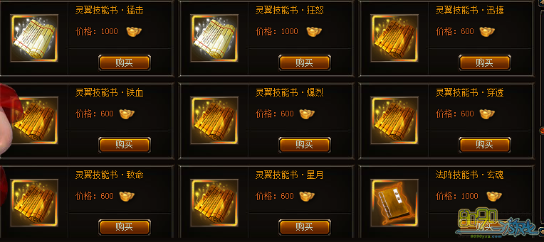 灵翼技能书可在商城购买,或者通过其他方式获得: