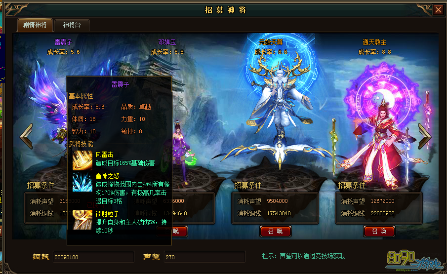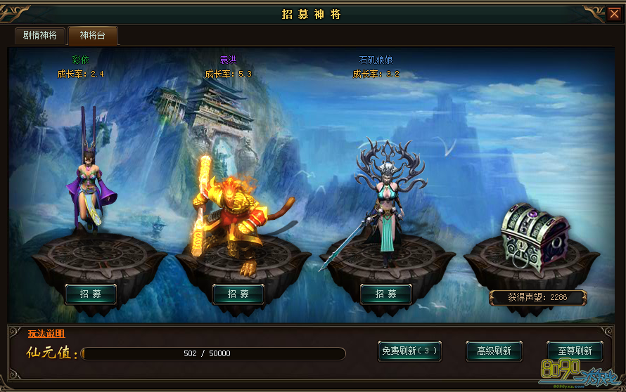 神将招募主要分成两个部分,玩家只要每日参加活动获得一定的生活与铜钱以后可以兑换所有神将。