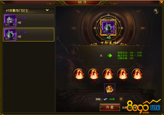 装备强化功能系统,可以通过消耗数量的【奇门之晶】升星材料和【银两】提升装备部位星级,升星后可获得成吨的人物角色属性加成,同时达到指定的星级数可激活装备部位的特殊强力技能,不同部位的装备会有不同的技能效果。