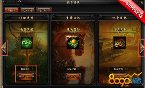 注意的是,副本进入后就消耗一次进入机会。所以想要升级经验就到经验副本,想要赚钱就进入绑元副本,别点错了,就算是点错了,也要打完在出来,不要浪费副本挑战机会哦。