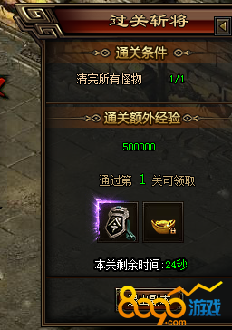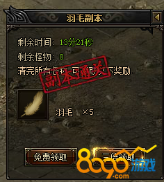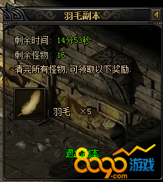 进入副本后,屏幕右侧显示副本的剩余时间,剩余怪物数量和奖励物品。