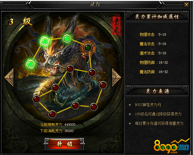 搜索"8090网页游戏"灵力系统是直接在人物界面里面的,这点想必大家都知道,我们重点说灵力增加任务哪些属性,怎么增加,升级灵力需要哪些条件和道具,道具怎么获得。