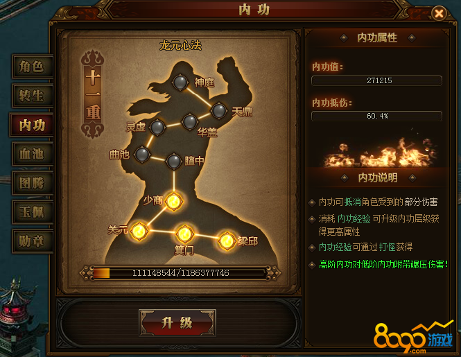 搜索"8090网页游戏"烈火封神里内功系统往往是一个比较会让人忽略的系统,主要是因为不能非常直观的带来属性的提升,战斗力的提升也不是非常明显,而且在打BOSS的时候也主要体现在抵挡伤害上,没有伤害数字那么直观的体现,那是因为没有升阶内功,一旦内功升阶,在PK当中就会看到很明显的好处,高阶内功对低阶内功是有碾压伤害的,那烈火封神内功应该如何升阶呢,接下来就听小编为您讲解一下烈火封神的内功应该如何升阶。