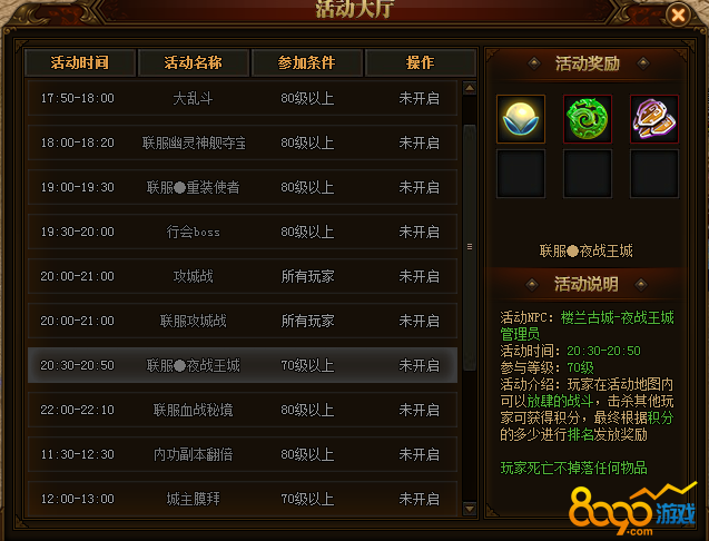 搜索"8090网页游戏"这些天小编也是收到很多玩家询问夜战王城怎么会掉战力,以为是系统的BUG,自己辛辛苦苦推起来的战力怎么就掉了,因为问的玩家也是比较多,今天,小编就来给大家介绍一下,夜战王城活动的情况,也是让玩家们放心,大家的战力都是还在的噢。