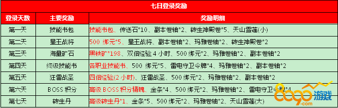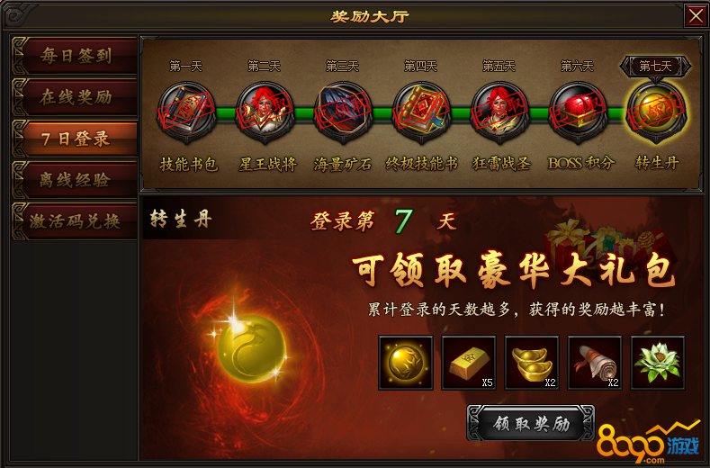 2. 中断登录不会影响奖励的领取,只要累计登录满7天,奖励即可全部领取。