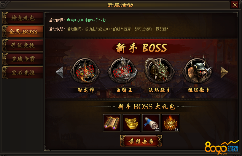 活动介绍:活动期间,击杀指定BOSS即可获得丰厚奖励。