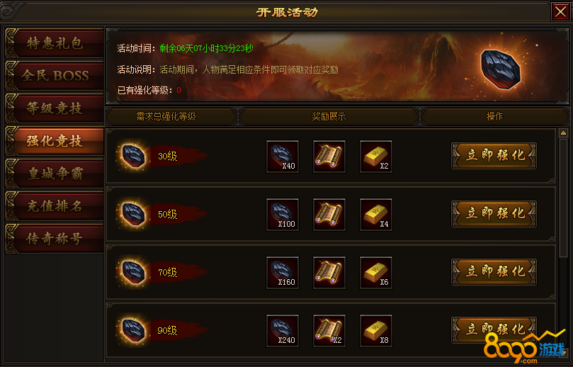 活动介绍:活动期间,强化等级达到指定要求,即可获得黑铁矿或赤铁矿返利奖励!