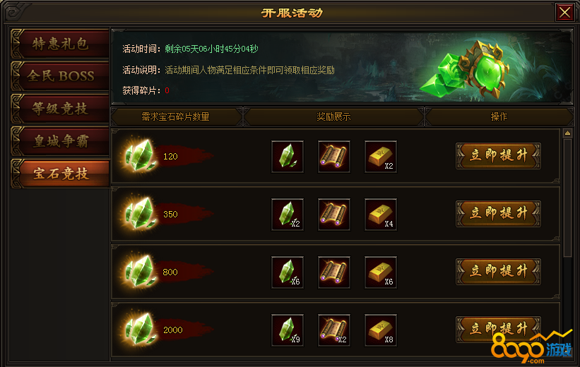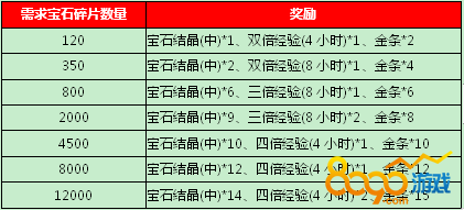 活动介绍:活动期间,获得宝石碎片达到指定要求,即可获得超值宝石碎片返利奖励!