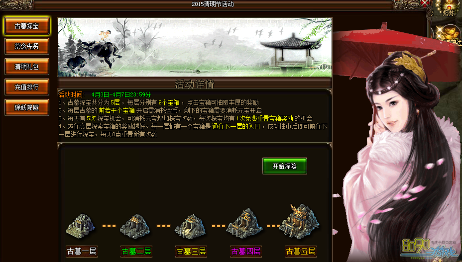 搜索"8090网页游戏"清明时节祭祀先贤扫墓踏青,又到了中华民族的传统节日了,烈火战神2015年清明节活动同样精彩纷呈。