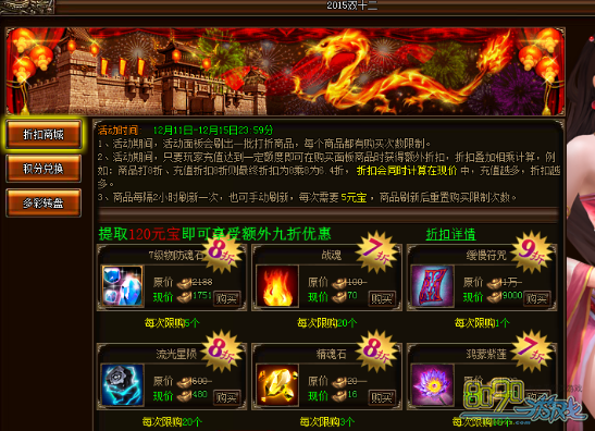 • 烈火战神12月11日-15日全民双12 折扣商城一起狂欢