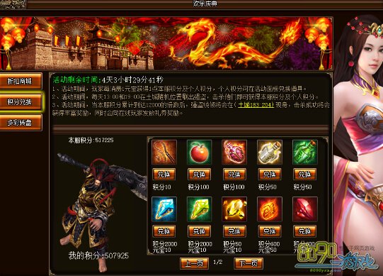 A.活动期间,玩家每消费1元宝获得1点本服积分及个人积分,个人积分可在活动面板兑换道具。