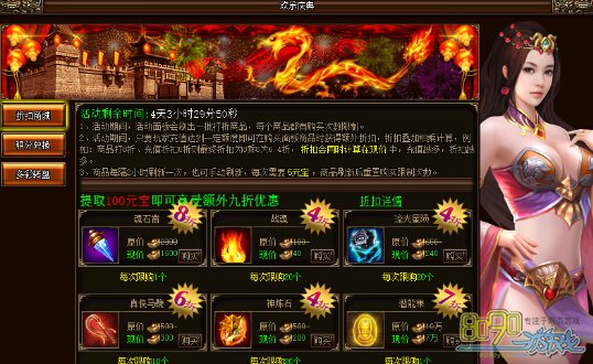 搜索"8090网页游戏"活动期间,将开启各种消费优惠活动,惊喜送不停!更有机会获得神秘属性的时效坐骑.