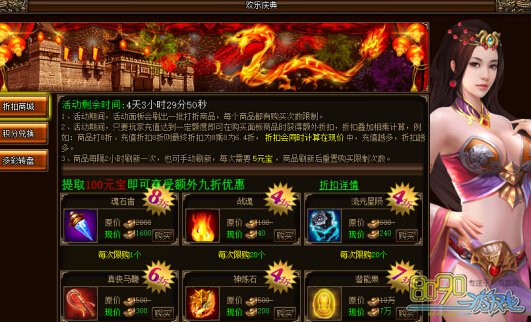 搜索"8090网页游戏"活动期间,将开启各种消费优惠活动,惊喜送不停!更有机会获得神秘属性的时效坐骑.