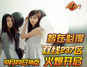 烈火237区10月23日18点火爆开启,快加入我们,轻松地实现万人同时在线一起攻城。火爆的战斗,狼烟四起的场景,只要身处游戏的玩家莫不热血沸腾!攻城,是永远不过时的战斗!
