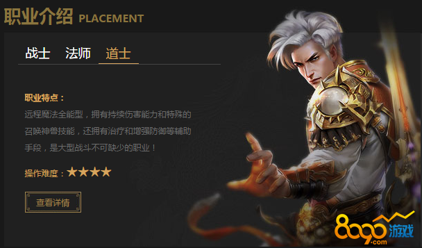 精通通灵之术的道士能够召唤强力神兽作为帮手,强悍的神兽让道士可以轻松应对各种危险的怪物,甚至能够单独面对来自凶猛BOSS的挑战。通过对于天地之理的研究,道士熟知各种治愈、攻击和防御手段,全能的道士深得团队当中其他人的尊敬。众多种类的道术让道士可以在战斗当中拥有较强的生存力与持久力,强大的施毒术使得道士在PK当中不能被小视。
