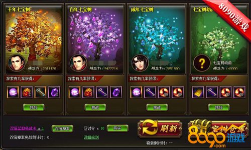 在8090烈斩中除了击杀boss可以获得大量的奖励之外还有一个神奇的玩法也是可以获得珍惜道具哦,那就是七宝树了,抢夺七宝树后每隔20分钟就可以获得一件奖励,但是每次抢夺七宝树都是需要消耗征讨令的,所以除了实力在这个副本必备的道具也是不能少的。