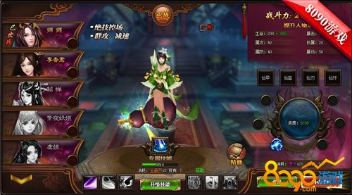在8090烈斩的战斗过程中如果只是一个人那未免太过孤单,所以就出现了美人的玩法哦,让大家在战斗的同时也有美人陪伴在身侧,在游戏中一共有9位美人,每一个美人的技能都是不一样的哦,所以大家可以根据自己的喜好来着重培养哦。