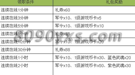 3,在线有礼,礼券及诸多奖励等你拿!开服即日起活动期间,玩家单次连续在线满相应条件即可领取相应的礼包奖励。