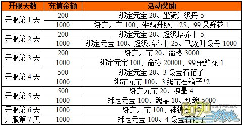 活动时间:开服3-7天内