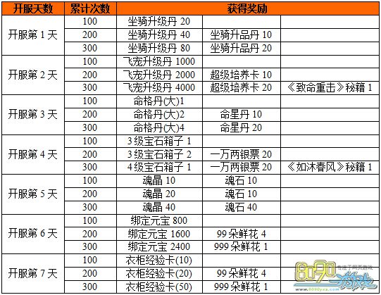 活动时间:开服起5-7天内