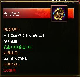 活动奖励:专属称号 天命所归