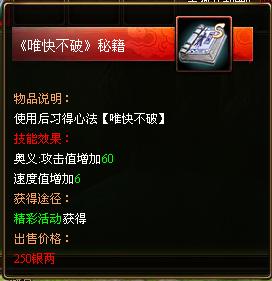 活动奖励:《唯快不破》秘籍*1